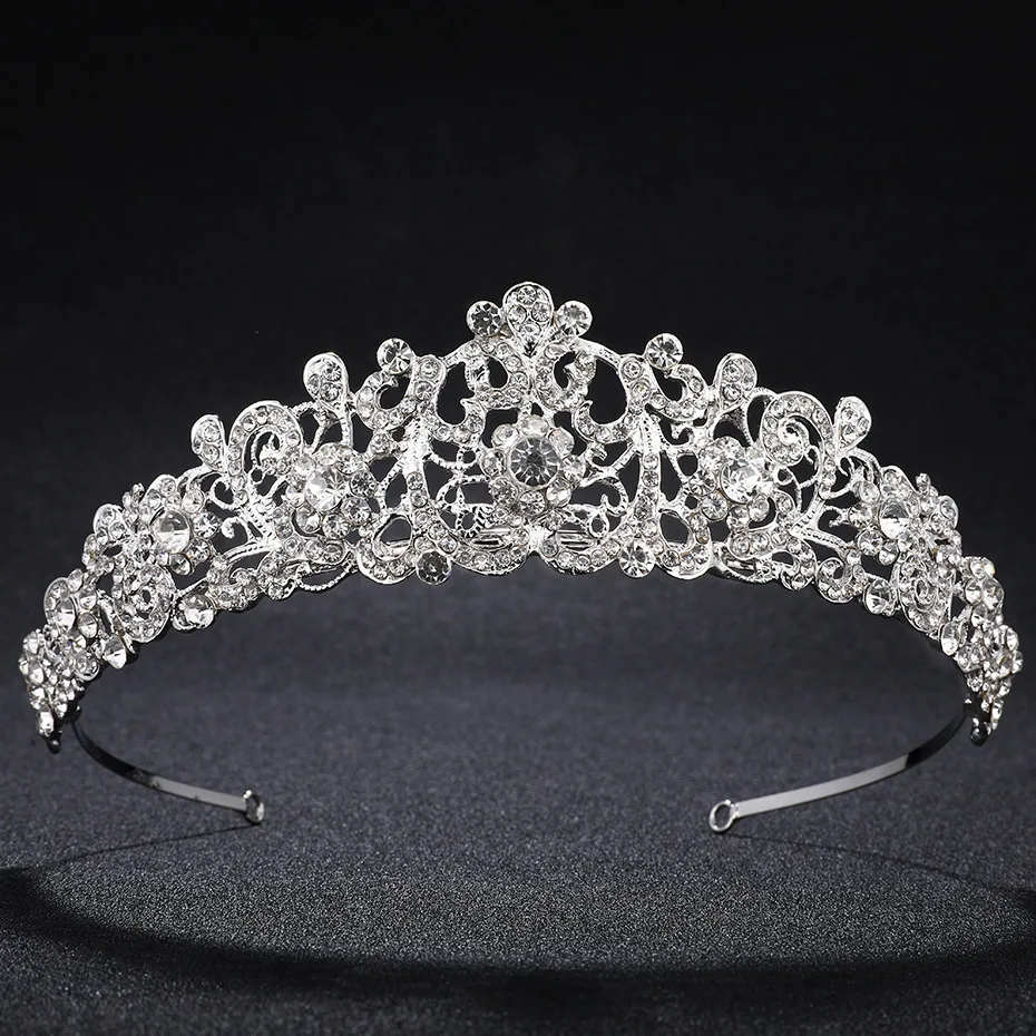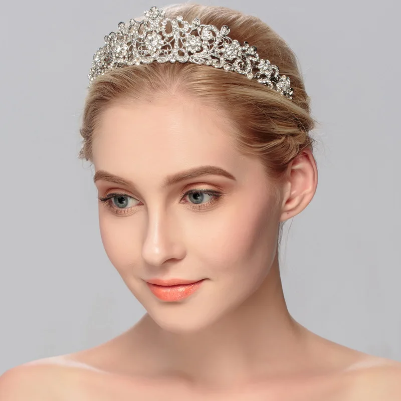 New Pattern Wedding Accessories White Clear Rhinestone Flower Bridal Crown Fashion Bride Headwear Q